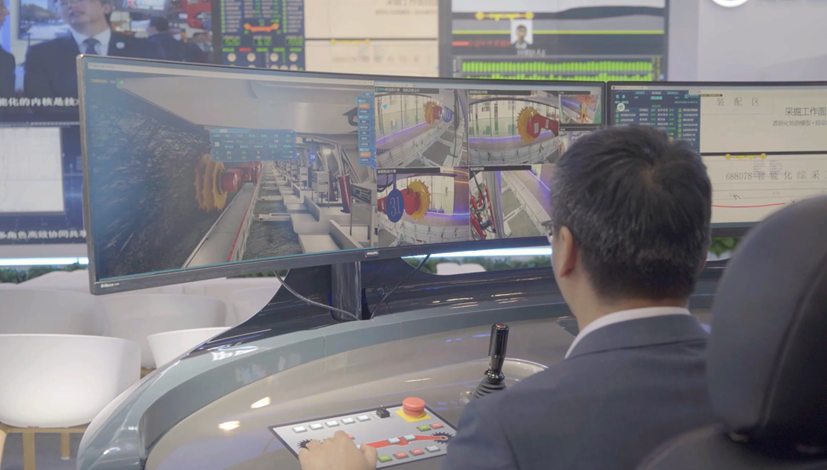 在展會現場進行公司技術驗證基地(河北燕郊)綜采工作面的遠程管控